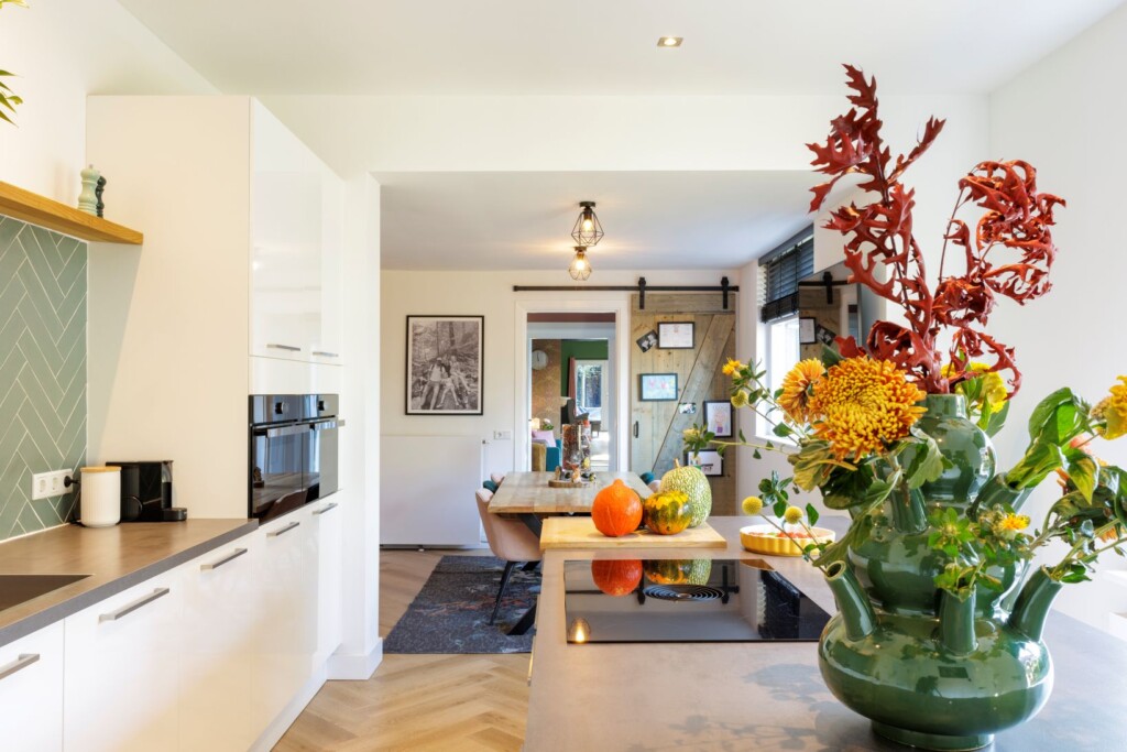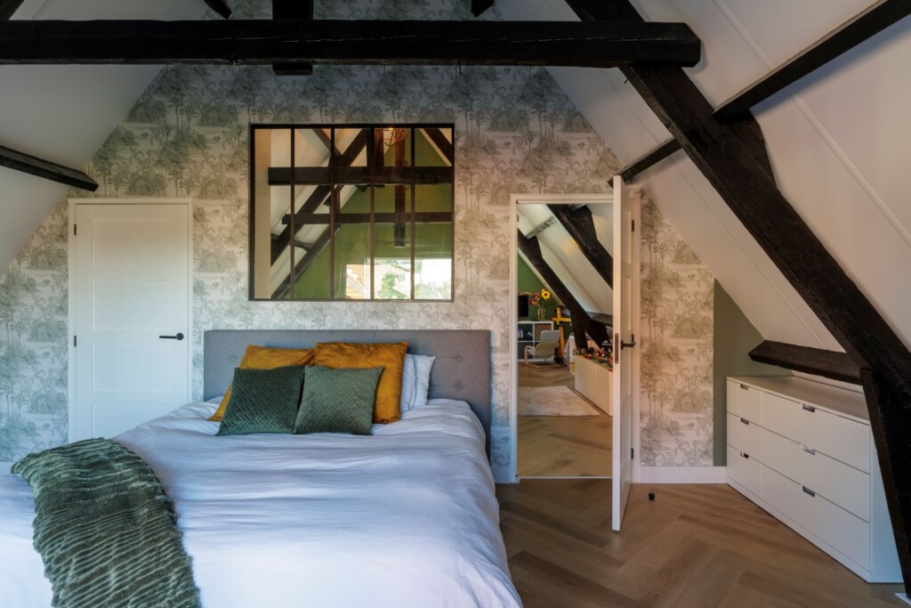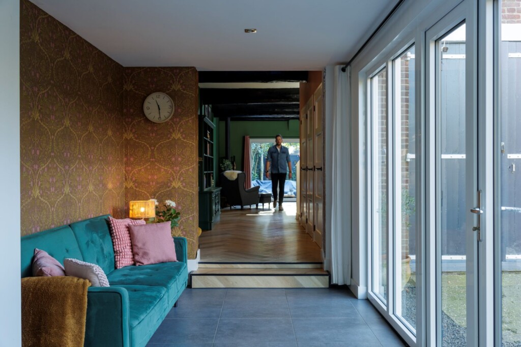 Het stel kocht hun woning aan het begin van de covidperiode. Wouter: “Voor de lockdowns zaten we wel prima in onze Vinex-woning in De Meern. Het was een mooi, comfortabel, modern huis, dicht bij werk. Maar toen de wereld zich sloot, merkten we dat we iets anders wilden. Natuur dicht bij huis, een eenvoudiger leven. Na een zoektocht kwamen we bij dit huis terecht. Met een flinke tuin en een arboretum op loopafstand en water, bos en weilanden in de buurt heb je hier alles.” “Met een gelukje pasten we nog bij de kijkdag”, gaat Melanie verder. “We hebben ter plekke een bod gedaan op basis van een hoofdrekensom. Moet kunnen, dachten we. Achteraf gezien was het wel een impulsaankoop.”