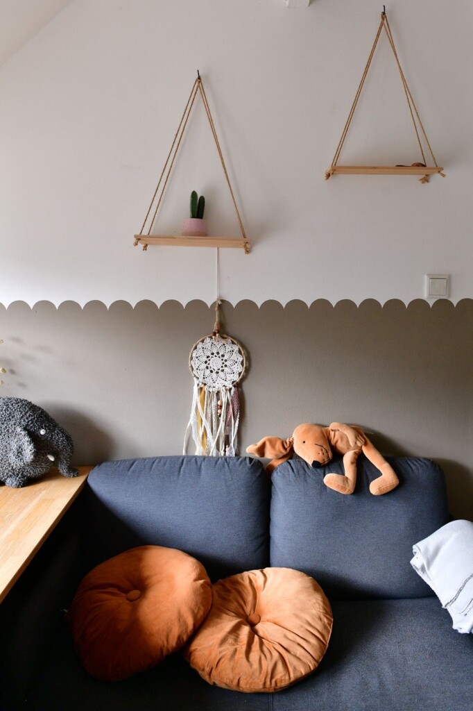 Laura is creatief. Ze maakt kinderkleding, knapt meubels op en schildert graag. Ze heeft haar eigen atelier in het voorste gedeelte van de voormalige garage. “Een luxe! Heerlijk om daar te kunnen werken en de deur achter me dicht te trekken zonder alles op te hoeven ruimen als ik midden in een project zit.” Ook in huis is haar creatieve hand zichtbaar. “Ik word helemaal gelukkig als ik op Marktplaats een goede koop vind en die weer helemaal tot leven kan brengen.” Veel meubels in huis zijn door Laura opgeknapt. Ook met verf is ze creatief. Zo maakte ze in de speelkamer een ronde schulprand langs de muur – met behulp van een koffiekopje. “Ik hou ervan mijn eigen stempel op het huis te drukken.”