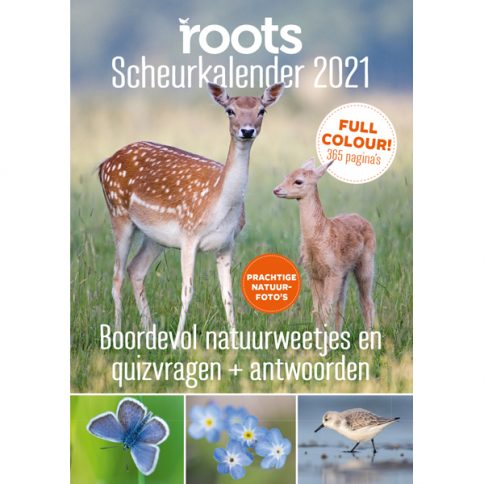 Meer leuke natuurvragen en -weetjes vind je in de nieuwe Roots Scheurkalender 2021, die is geïllustreerd met 365 full colour natuurfoto’s. In deze scheurkalender vind je elke dag een natuurweetje of quizvraag (met antwoord). De scheurkalender is ook verkrijgbaar als cadeautje bij een kortlopend Roots-abonnement.