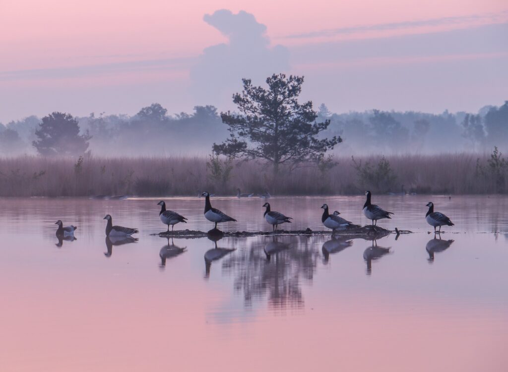 Cindy Kuiphuis – Ganzen in het vroege ochtendlicht