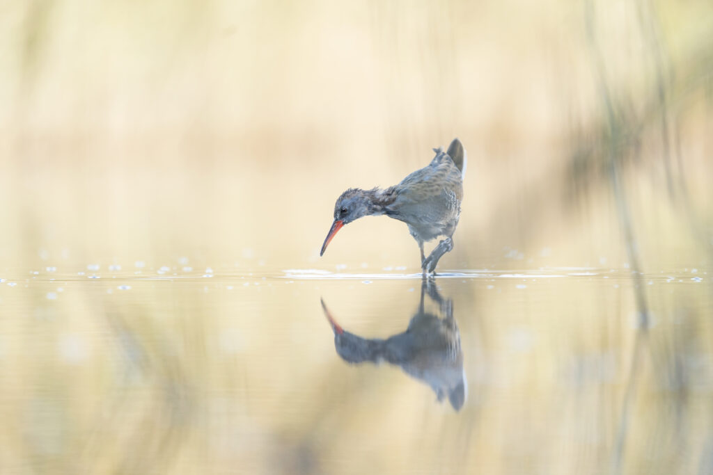Het zachte licht en de elegante houding van de waterral maken van deze foto iets bijzonders.