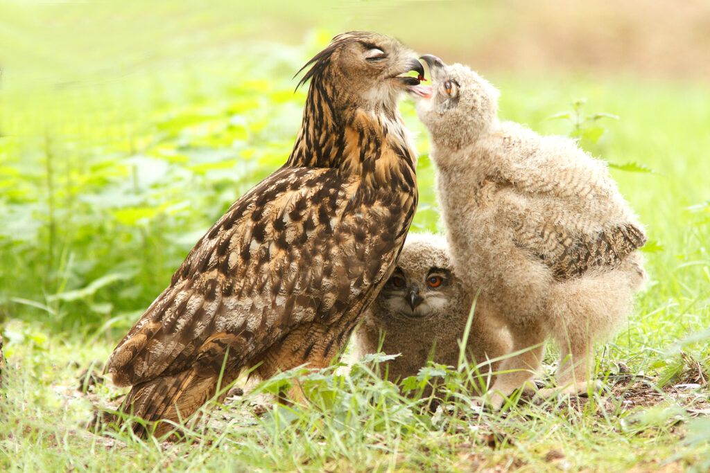 Kerkuilskuikens • Edgar Tossijn. Perfect vastgelegd moment. De compositie is uitstekend, het zachte, lage licht is mooi en de blikken van de uilen maken de foto zeer aansprekend.