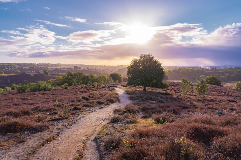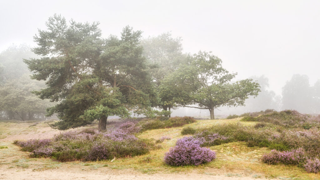 1. Zoals bij zoveel natuuronderwerpen geldt ook bij heide fotograferen: vroeg opstaan loont. Een beetje ochtendnevel en de eerste zonnestraaltjes maken jouw heidefoto een stuk interessanter.