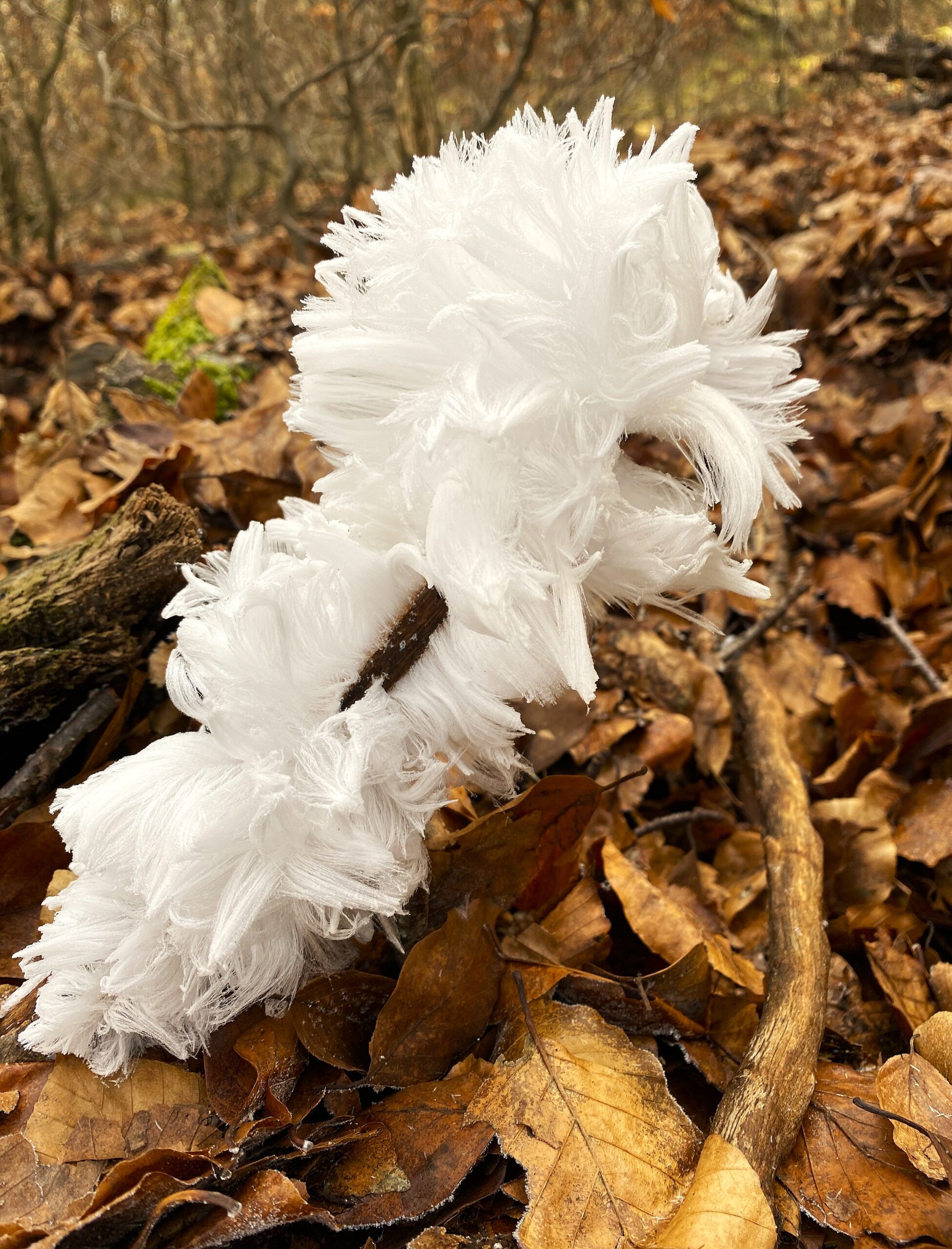 Het is sowieso slim om vroeg op pad te gaan om ijshaar te vinden. Bij lichte nachtvorst is het overdag immers vaak wel boven nul. Als de omstandigheden goed zijn, vind je overal “bebaarde” takken. Een lange zoektocht is doorgaans niet nodig (het is er of het is er niet).