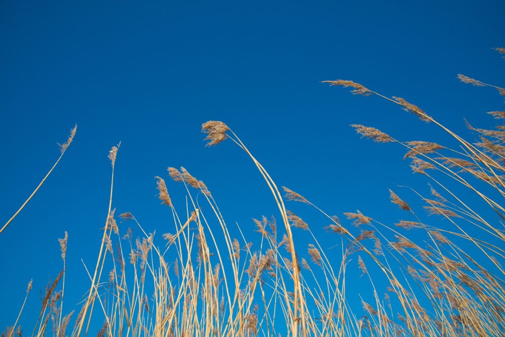 Wuivend riet onder een felblauwe hemel. Foto: Edwin Giesbers