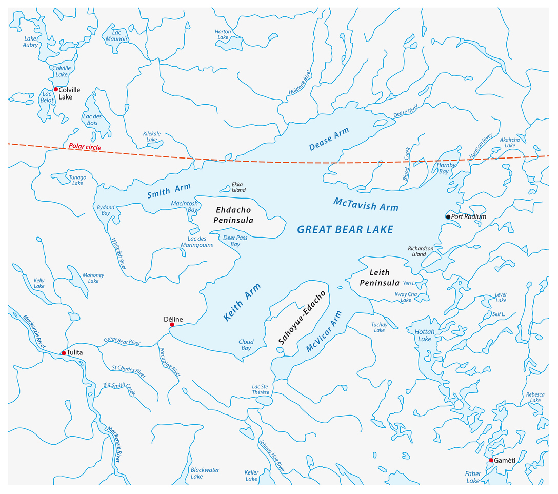 Op plek acht het grootste meer dat volledig in Canada ligt, om precies te zijn binnen de Poolcirkel: het Groot Berenmeer (Great Bear Lake). De winters hier zijn lang en koud: van november tot juli is het meer bevroren. De zomers zijn kort en koel.