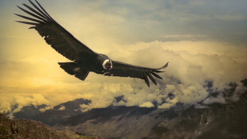 De Andescondor excelleert in zweven: slechts 1% van zijn totale vliegtijd klappert deze ‘king of the sky’ met zijn vleugels. De eerste vlucht van een jonge Andescondor heeft wat voeten in de aarde – om precies te zijn wat zetjes van pa en ma.
