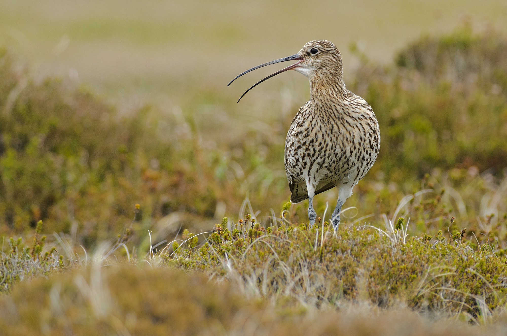 Kenmerken: verenkleed met kleine grijsbruine streepjes en een lange gebogen snavel.