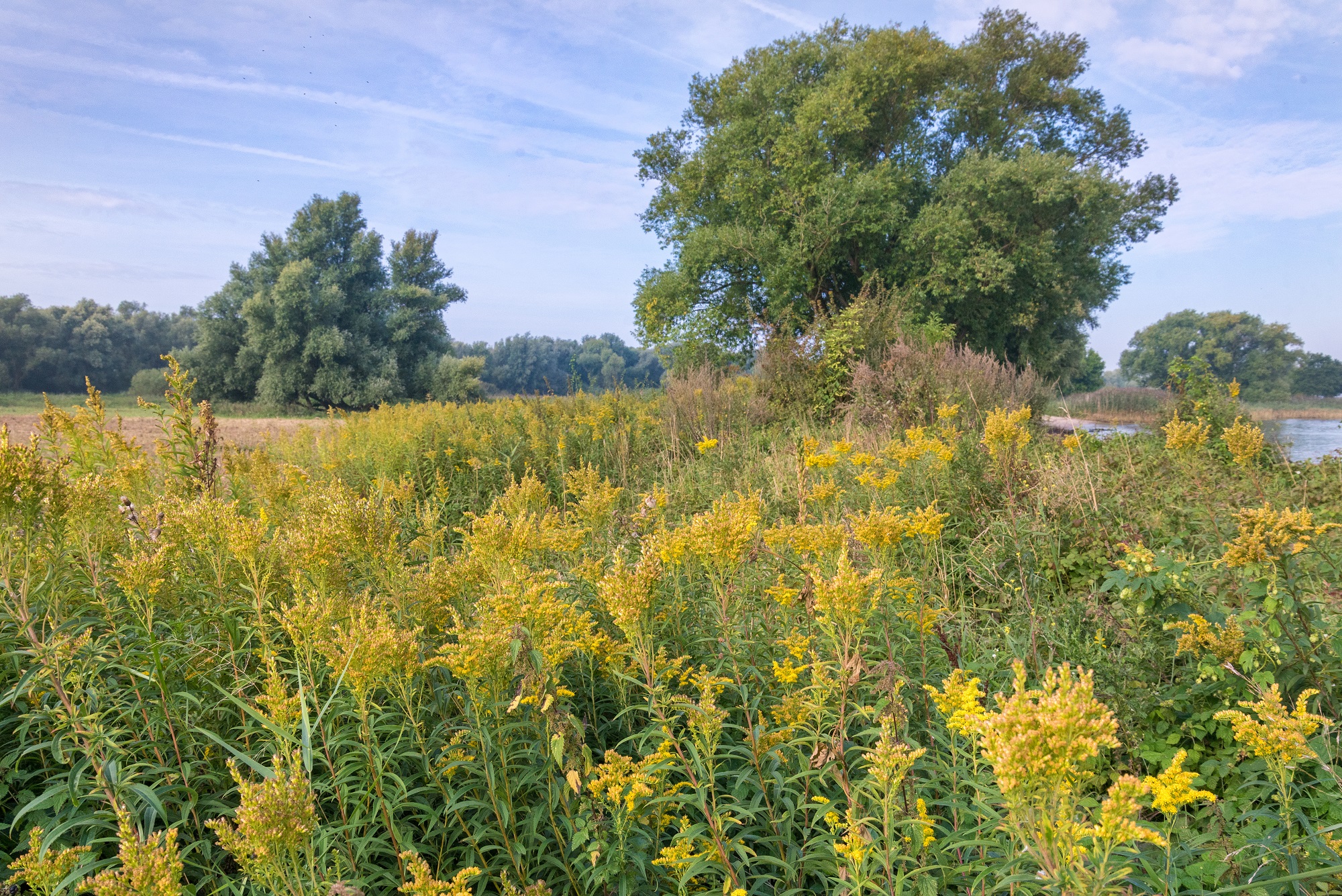 De uiterwaarden zijn alle drie toch net even anders. Eerst loop je over ’t Gors. Tussen dichte, gevarieerde loofbossen (met zowel wilgen als eiken) liggen hooilandjes. De vlinders en libellen vliegen er op mooie dagen vaak nog tot eind september, omdat het er zo beschut is.