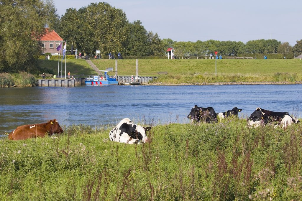 Net voor het voetveer verschijnt er ineens een levend schilderij in beeld. Koeien liggen loom op een strandje langs de rivier. De bekende IJsselschilder Jan Voerman schilderde verschillende van zulke taferelen. ‘Rusten IJsselvee’, ‘Vee aan de IJssel’ of ‘IJsselgezicht met koeien’, het is een greep uit zijn werk en je ziet het hier in levenden lijve.