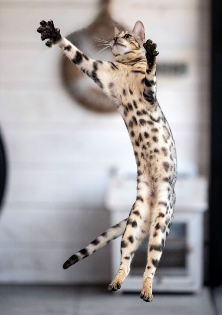 De aanhankelijkheid is echter niet vanzelfsprekend. “Tot twaalf weken doen wij heel veel aan socialisatie, want er zit een percentage wildbloed in. Die eerste periode is zo belangrijk, dan moet je echt doorzetten om de liefste katten te krijgen. Onze kittens groeien op in een huiselijke omgeving met kinderen en andere huisdieren. Daardoor zijn ze van jongs af aan gewend aan drukte, spelen en knuffelen. Het is niet zo dat je anders een wilde kat hebt die in de gordijnen vliegt, want sloperig zijn ze niet en je mag geen vroegere, dus wildere, generaties houden. Pas na de F7, dus zeven generaties na een echte wilde kat, mag je ermee fokken in Nederland, gelukkig.”